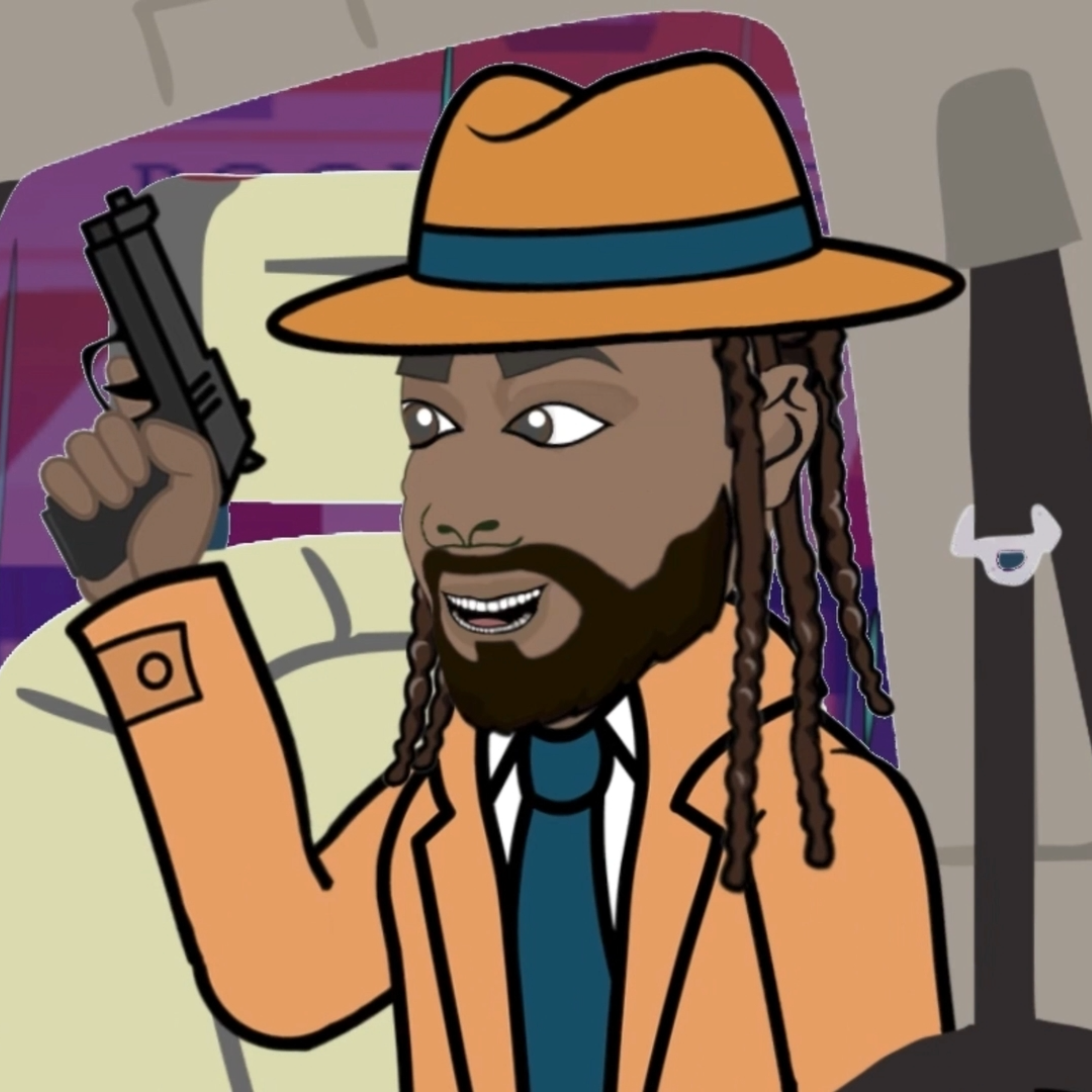 He’s going for that Dick Tracy-style, super-pimped-out, blunt-smoking, crime-fighting energy — the type that’ll take your girl while solving the case at the same time.